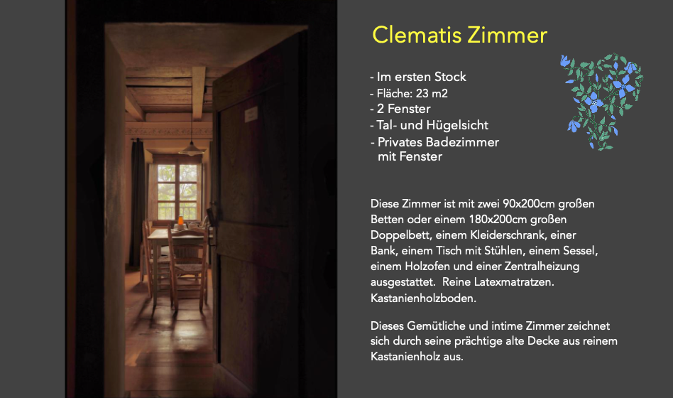 Zimmer ClematisZimmer GlicineZimmer VignaZimmer SaliceMezzadri Wohnung